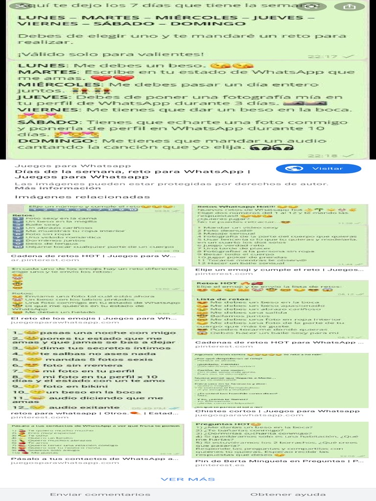 Al ser una aplicación de mensajería muy popular en todo el mundo, whatsapp ha superado los 2.000 millones de usuarios. La lista de preguntas que os mostramos a continuación también puede incluirse en cualquier juego de yo nunca o de verdad o reto. Aunque no sea una de las preguntas para conocer a alguien más indicadas de todas, sí es muy atrevida. Mejor ir al grano que quedarse con las ganas. El conocimiento de tu pareja hará que tu relación pase a otro nivel, por eso hemos seleccionado estas preguntas hot para conocer lo que le va y lo que no y sepas como poner a 100 a tu persona amada realiza estas 50 preguntas hot como un juego y relájate, es la mejor forma de crear un ambiente de complicidad con tu pareja. Y en tiempos de aburrimiento, también se puede usar para retar y desafiar a tus amigos o familiares, especialmente en tus chats grupales.una de las cosas más comunes son los juegos de preguntas para whatsapp. 1 las mejores cadenas hot para whatsapp para compartir. We have got 9 pics about preguntas incómodas retos hot para whatsapp images, photos, pictures, backgrounds, and more. Cadenas de retos hot para whatsapp juegos para whatsapp apuntes. Esta cadena está dirigida solo a las parejas. Para tener una mayor selección de cadenas con preguntas para whatsapp, hemos separado las cadenas en diferentes categorías, donde podrás encontrar preguntas atrevidas para los más valientes, preguntas románticas para los enamorados o algunos juegos para whatsapp con preguntas graciosas para poder divertirte y soltar alguna que otra carcajada. Vamos a empezar a subir el nivel un poco de estas cadenas hot de whatsapp y vamos a darle un toque más picante para que la persona que lo reciba tenga unas respuestas un tanto atrevidas. Cuando entras en ikea, los muebles tiemblan a tu paso.